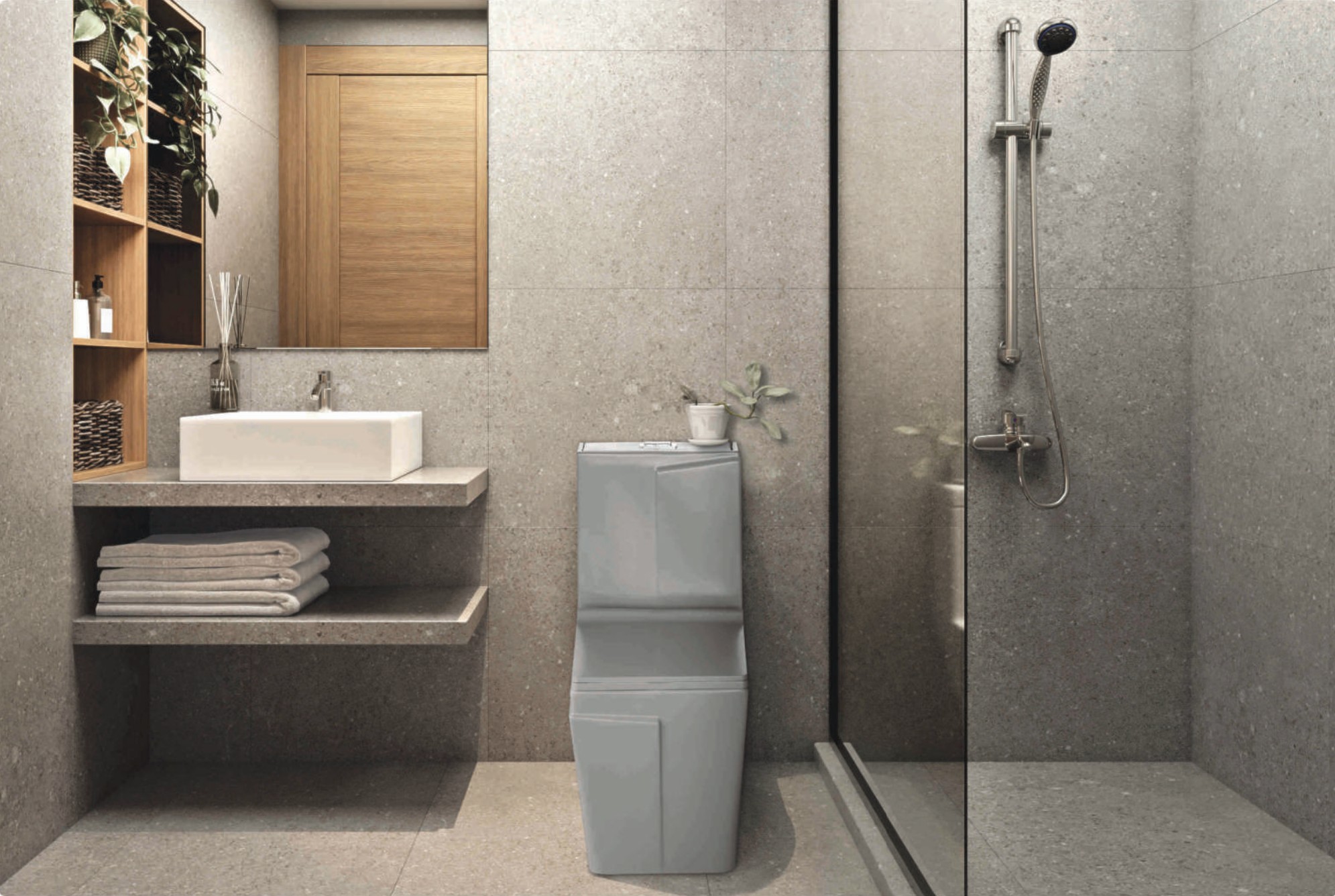 امروزه در طراحی سرویس بهداشتی میتوان از ترکیب سرامیک براق و مات، یا سنگ طبیعی و سرامیک پرسلان استفاده کرد. این کار باعث ایجاد عمق و جلوهای متفاوت در فضا میشود.