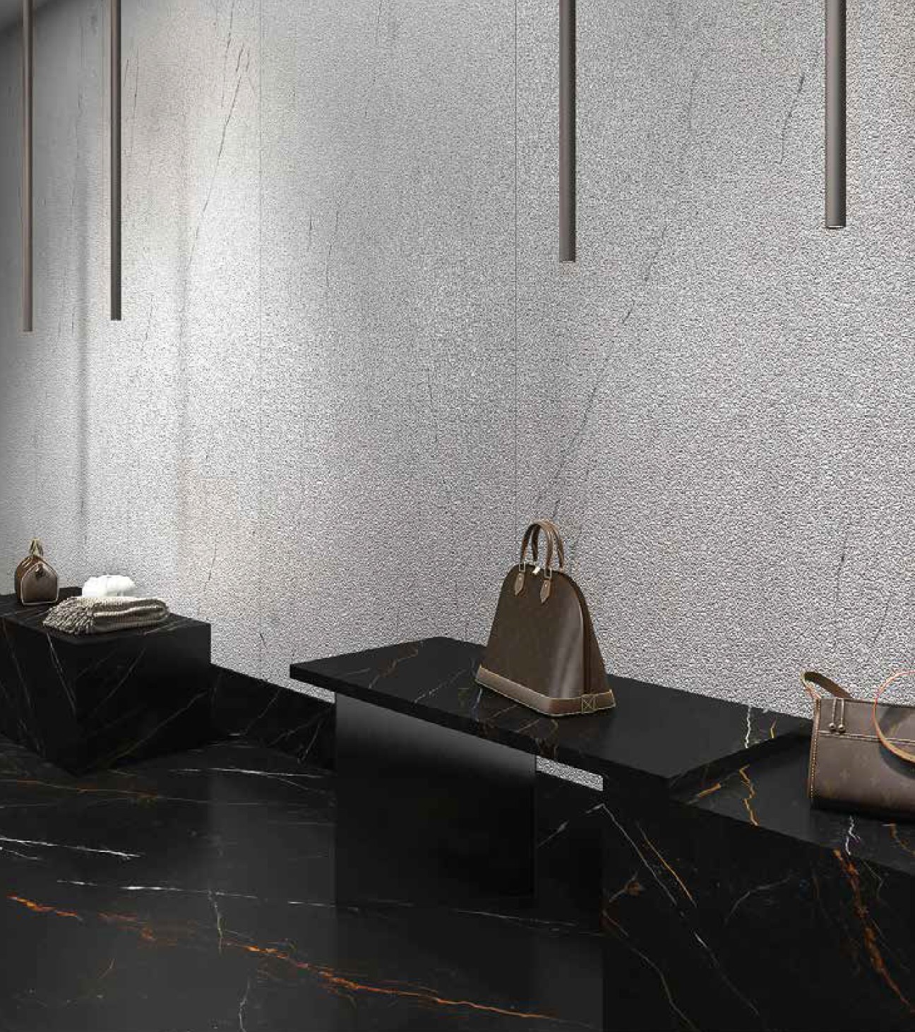 سرامیکهای مشکی با رگههای طلایی یا سفید کمرگه، انتخاب اول فروشگاههایی هستند که محصولات گرانقیمت و لوکس عرضه میکنند.