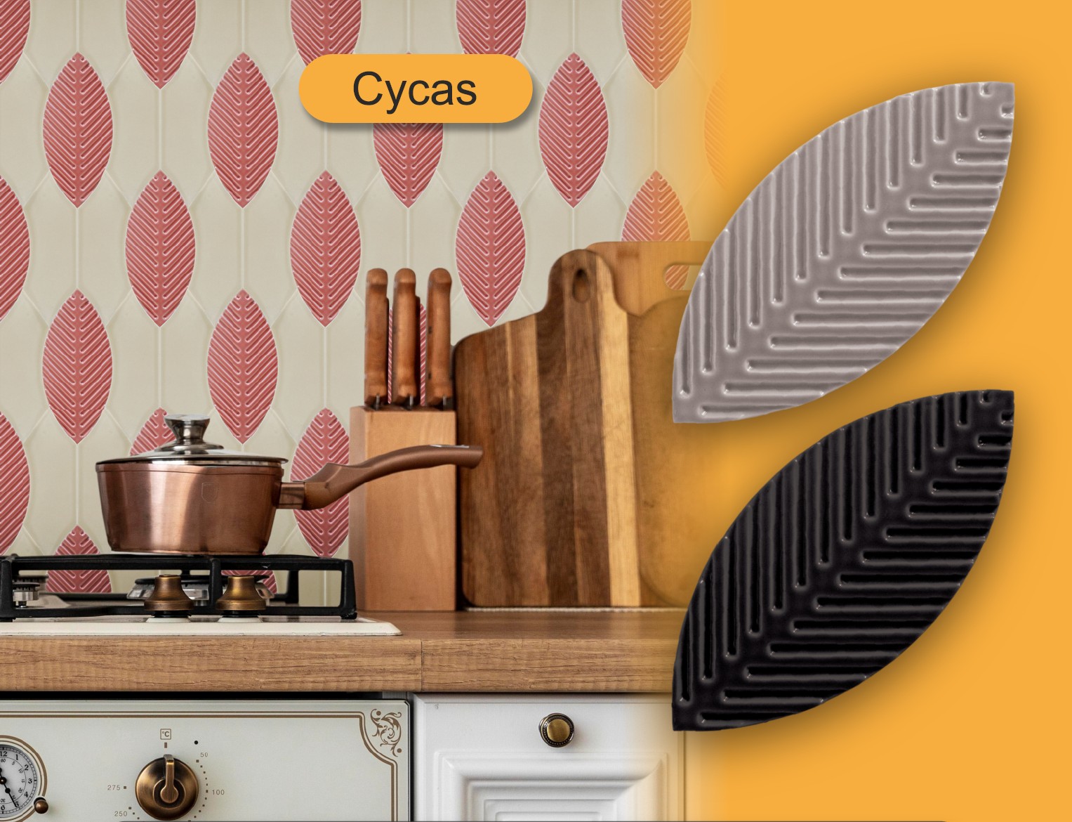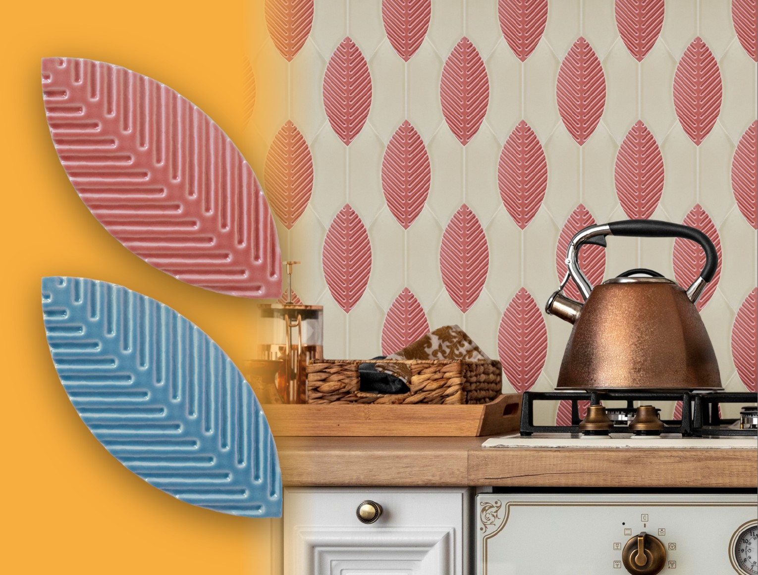 این سرامیک شبیه به برگهای دراز گیاه فیکوس طراحی شده است. برگها به صورت سهبعدی و بدون بند در کنار هم قرار میگیرند و نمایی طبیعی و بسیار خاص به فضا میدهند. رنگبندی جذاب و قابل سفارشیسازی آن، انتخابی ایدهآل برای بین کابینت آشپزخانه، سرویس بهداشتی و حمام است.