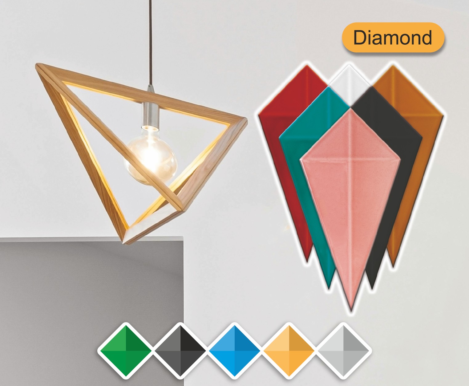 سرامیک دیاموند با طراحی الهام گرفته از شکل الماس، در دو رنگ موجود است. در بالای هر الماس یک الماس کوچکتر قرار میگیرد که کار را برجستهتر و جذابتر میکند. این مدل تقریباً در همه فضاها از جمله دیوارهای پذیرایی، آشپزخانه، حمام و حتی کافهها قابل استفاده است.