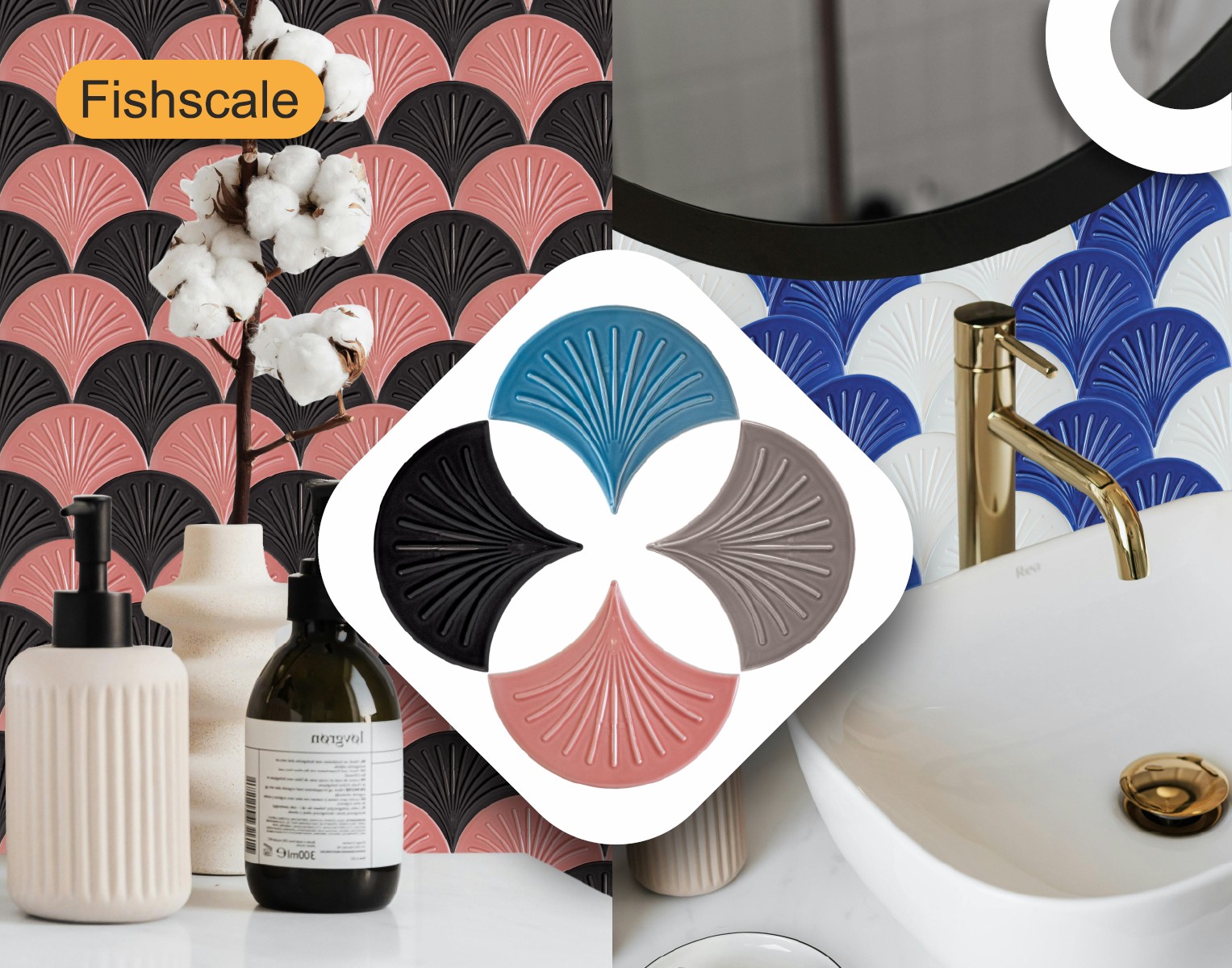 این نوع سرامیک یکی از محبوبترین مدلهای دکوری است که به شکل فلسهای ماهی طراحی شده و هنگام نصب، ظاهری موجدار و چشمگیر ایجاد میکند. رنگبندی شاد و پاستیلی آن باعث میشود گزینهای عالی برای پشت روشویی، دیوار حمام و فضای پشت دوش باشد. از آنجایی که فلسها در کنار هم جلوهای هماهنگ دارند، میتوان چند رنگ را ترکیب کرد و طرحی خاص ایجاد نمود.