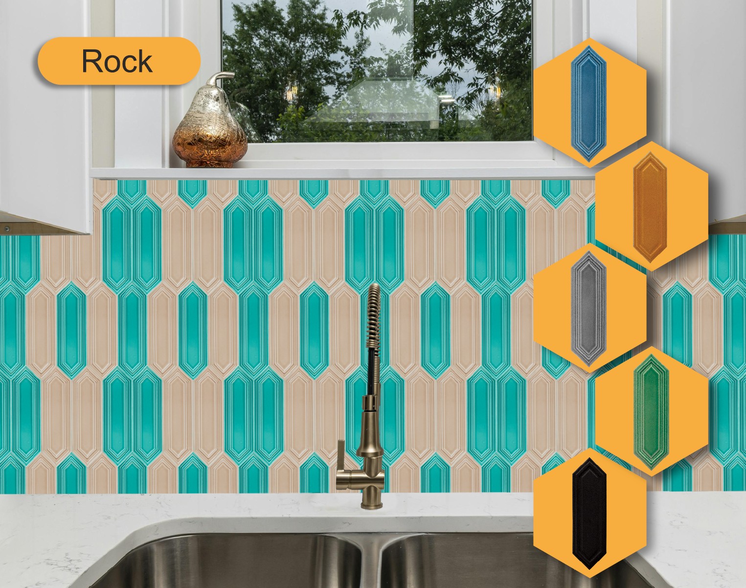 اگر به دنبال طرحی هندسی و متفاوت هستید، سرامیک راک بهترین انتخاب است. این سرامیک به صورت ششضلعی طراحی شده و به دلیل سهبعدی بودن، جلوهای مدرنتر از سرامیکهای مترو رایج دارد. رنگبندی شاد و پاستیلی آن، نصب در بین کابینت آشپزخانه و دیوار سرویس بهداشتی را به تجربهای منحصربهفرد تبدیل میکند.
